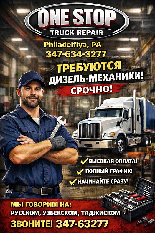 В One-Stop Truck Repair в Филадельфии, PA, требуются дизель-механики.